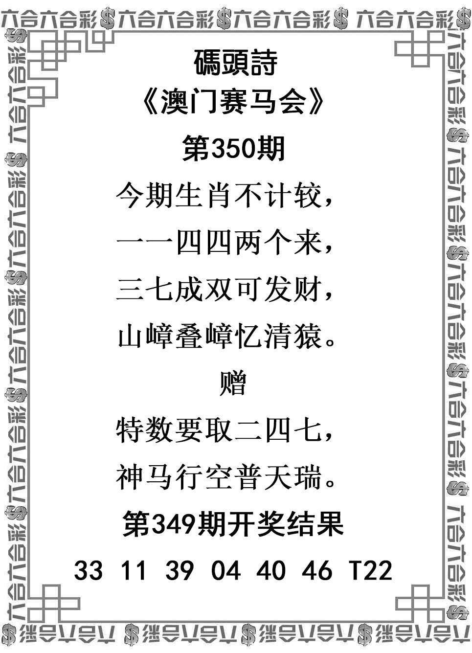 349期24码中特开 猴22错 |